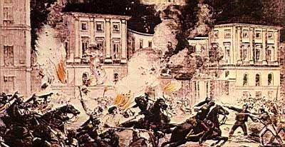 desde donde cabildeaba, fue atacado el 17 de julio de 1854 durante la llamada Vicalvarada y tuvo que huir al Palacio de Oriente, donde residía su hija, la reina.